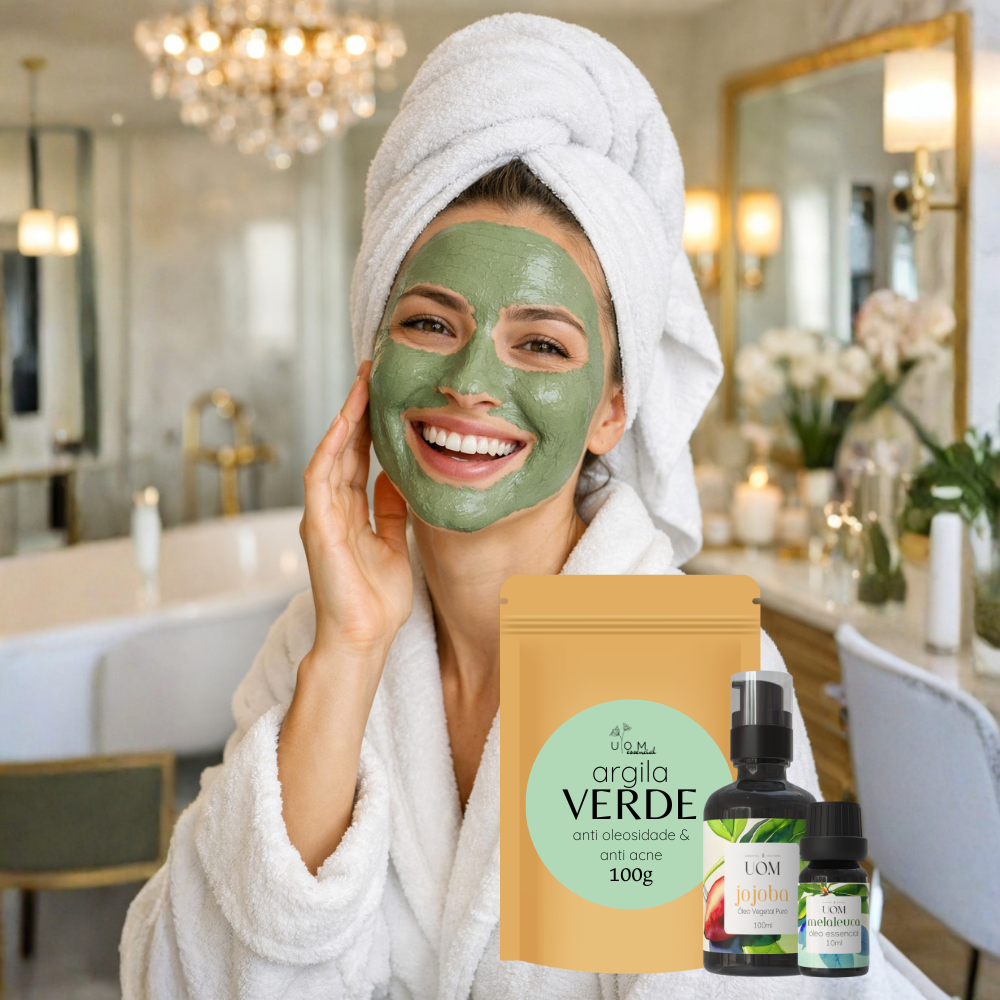 Se você luta contra oleosidade excessiva, acne e brilho indesejado, o Kit Pele Oleosa UOM é a solução natural e eficaz que sua pele precisa. Composto por Argila Verde, Óleo Vegetal de Jojoba e Óleo Essencial de Melaleuca, esse trio poderoso atua em conjunto para purificar, equilibrar e tratar profundamente a pele, sem agredir ou ressecar.