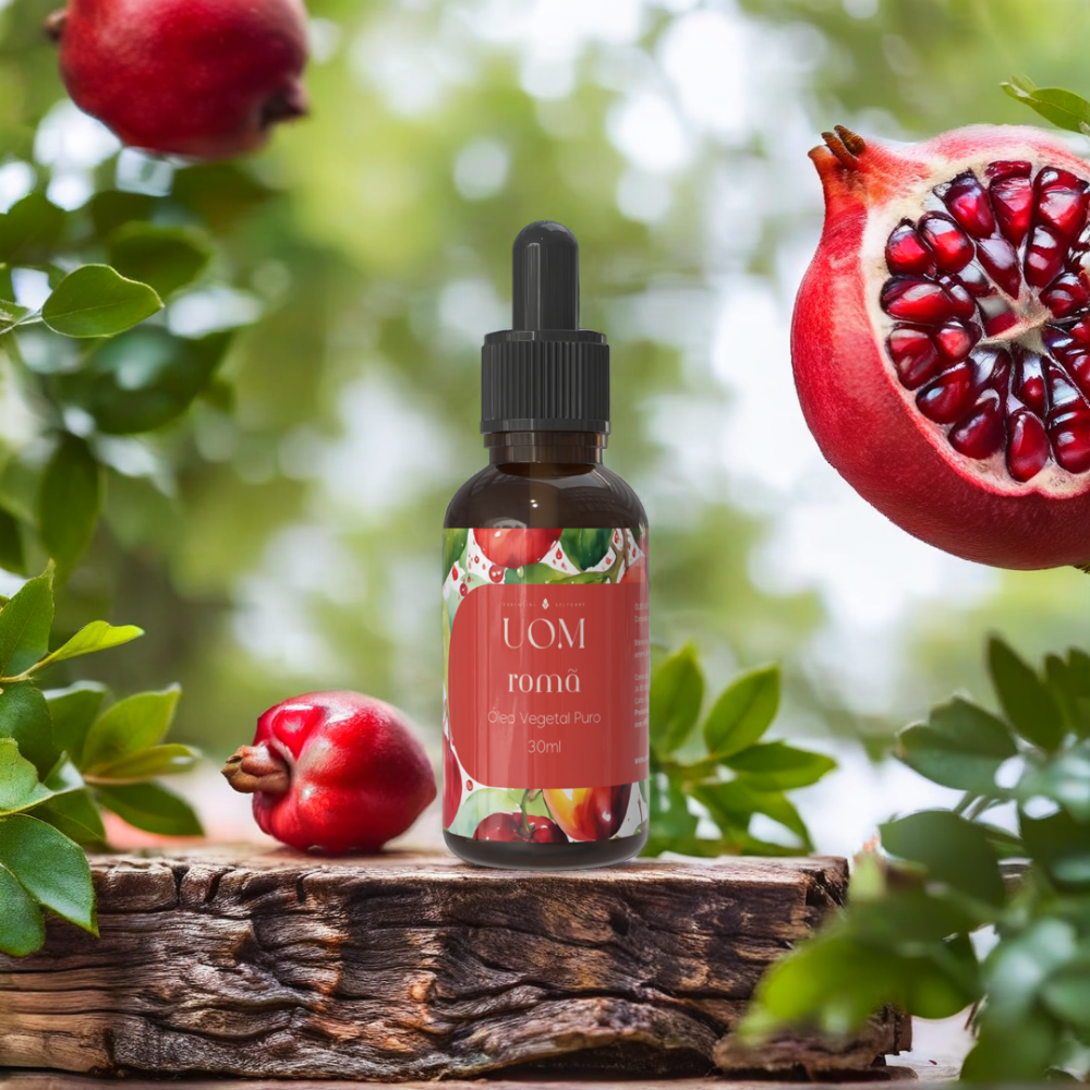 O Óleo Vegetal de Romã UOM é um verdadeiro elixir da juventude. Extraído das sementes da romã, ele é extremamente rico em ácido punícico (um raro ômega 5), vitamina C e antioxidantes potentes, capazes de regenerar a pele, prevenir o envelhecimento precoce e nutrir profundamente sem deixar oleosidade.